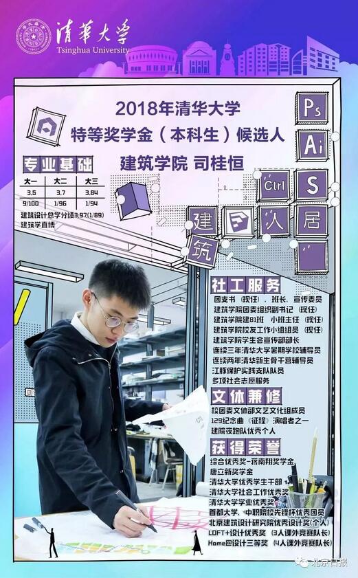 這個獎幾乎就是清華最牛學生的代名詞,之前幾年,因滿滿當當的日程表而出名的雙胞胎馬冬晗/馬冬昕、輪椅少年矣曉沅、從降分錄取到專業第一的自強計劃得主鐘玲以及擁有逆天高分的吳佳俊、韓衍雋等“大神”都拿過這一榮譽。