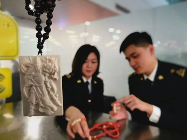2月26日,南京海關所屬金陵海關駐郵局辦事處在一個寄自臺灣的郵件中查獲象牙手串及象牙串珠24顆。