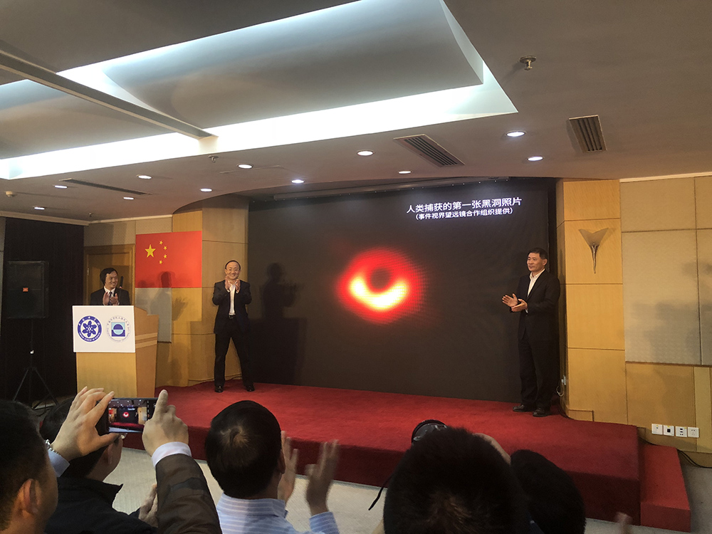 當日,中國科學院上海天文臺天文大廈三樓同步發布了人類首張黑洞照片。